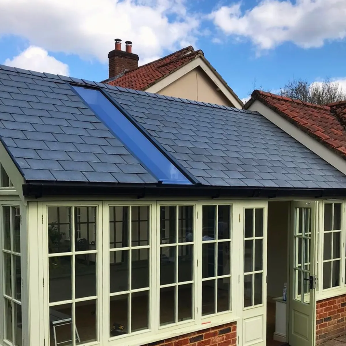The ThermaCore Warm Roof comes as standard with Britmet shingles or liteslates. Ther Low Pitch Roof is finished with our Low pitch roof sheets, but can supply different tiles if required (including concrete tiles if the supporting structure is strong enough for the additional weight)